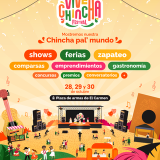 El festival se desarrollará en el marco del aniversario de Chincha los días 28, 29 y 30 de octubre y tendrá como sede principal la plaza de armas de El Carmen. Vive Chincha es el primer Festival creado por organizaciones, empresas y líderes juveniles. Busca la unión de toda la comunidad chinchana para impulsar una plataforma social, cultural y económica, que promueva las riquezas de la provincia.